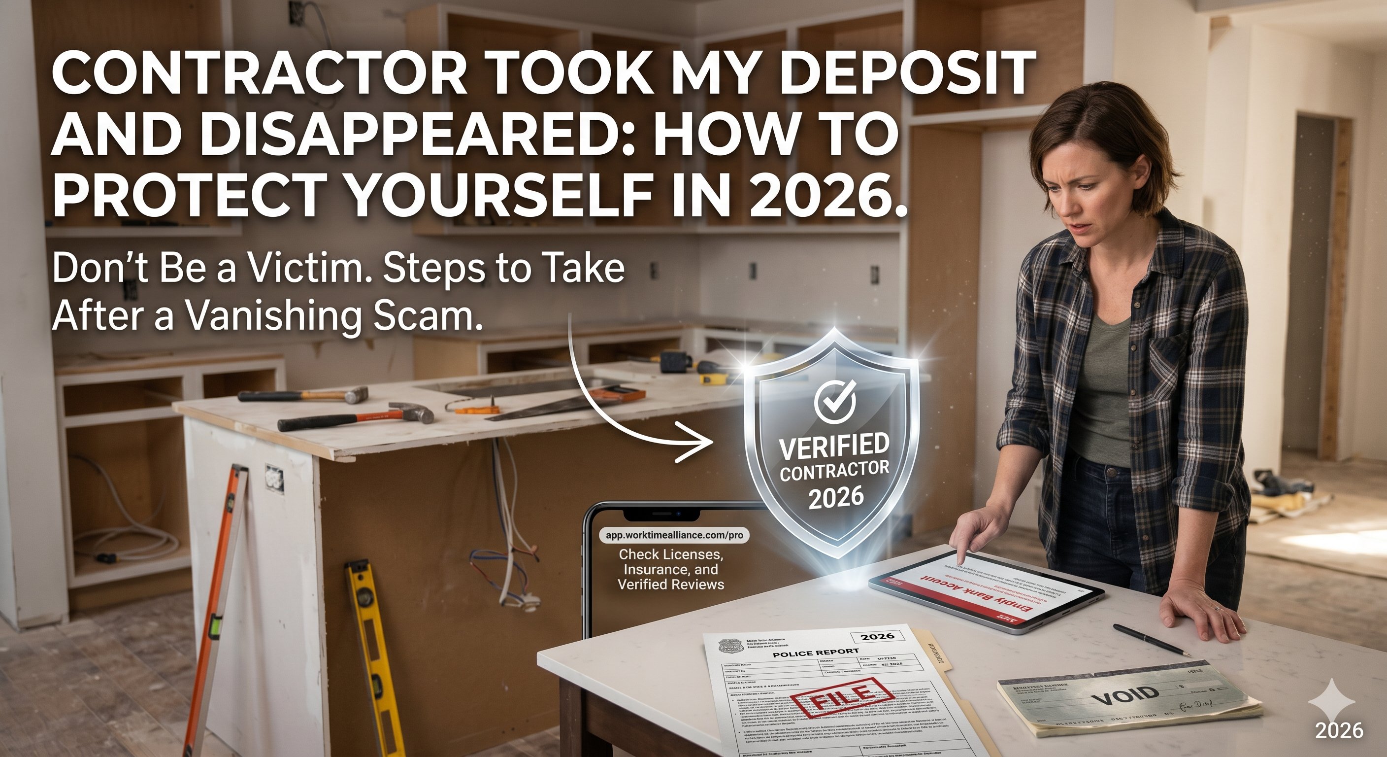 It's one of the most common — and most painful — homeowner stories. You hire a contractor for a renovation. They seem professional, the price is reasonable, you sign a contract. They ask for a deposit to "buy materials." You pay. Then... nothing. Calls go unanswered. They never show up. Your money is gone.